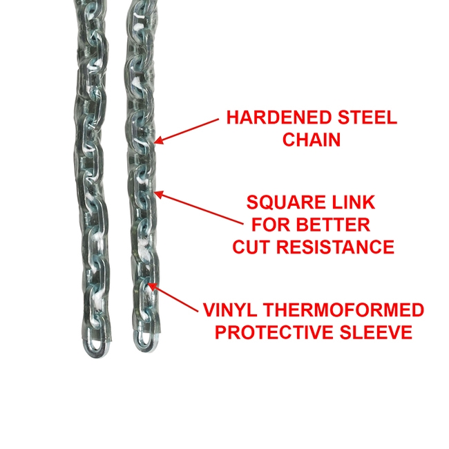 Η ατσάλινη αλυσίδα με κάλυμμα βινυλίου 1,00m Φ6mm της Masterlock διαθέτει σκληρούς χαλύβδινους συνδέσμους διαμέτρου 6 mm, που προσφέρουν αντοχή στην κοπή και το πριόνισμα. Ο τετραγωνισμένος σχεδιασμός του συγκολλημένου χαλύβδινου συνδέσμου παρέχει ανώτερη αντίσταση ενάντια στο σπάσιμο. Το προστατευτικό κάλυμμα βινυλίου προστατεύει από γρατσουνιές.
