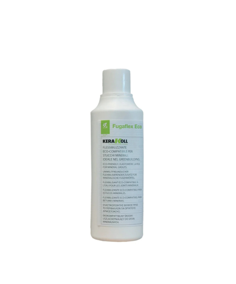 Υδατοδιαλυτός ελαστικοποιητής για ορυκτούς αρμόστοκους κανονικής και ταχείας πήξης. Το Fugaflex Eco αυξάνει την ελαστικότητα των αρμόστοκων, εγγυώντας τη συνέχιση των τοποθετημένων υλικών επένδυσης πάνω σε υποστρώματα που παραμορφώνονται ή που υποβάλλονται σε θερμικές διαστολές.