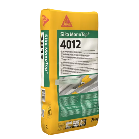 Sika MonoTop®-4012 είναι 1-συστατικού, τσιμεντοειδές, ινοπλισμένο, περιορισμένης συρρίκνωσης επισκευαστικό κονίαμα. Εμπεριέχει ανακυκλωμένες πρώτες ύλες που συντελούν σε μειωμένο αποτύπωμα άνθρακα.
