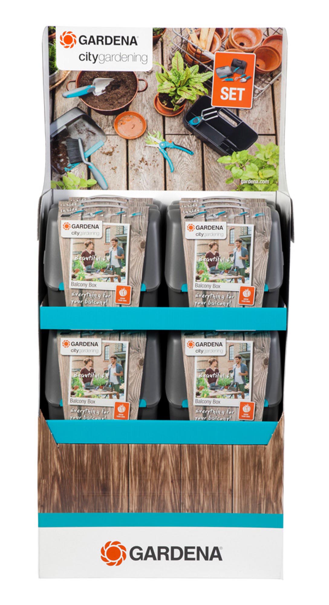 Το Σετ Μπαλκονιού GARDENA είναι το τέλειο σετ για όλους τους κηπουρούς μπαλκονιού. Το σετ περιλαμβάνει φτυαράκι, σκαλιστήρι, κλαδευτήρι και σκουπάκι. Όλα αυτά τα εργαλεία αποθηκεύονται στο ευρύχωρο πλαστικό κουτί, το οποίο έχει ένα καπάκι που διπλασιάζεται και μπορεί να χρησιμοποιηθεί ως φαράσι. Το σετ περιλαμβάνει όλα όσα χρειάζεστε για τη φροντίδα και του μπαλκονιού και του αιθρίου με κήπο.