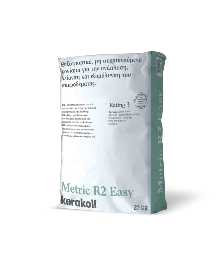 Το Metric R2 Easy είναι ένα κονίαμα κατηγορίας R2 για εξομάλυνση επιφανειών και αποκατάσταση κατασκευών σκυροδέματος.