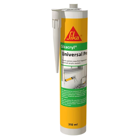 Το Sikacryl® Universal Pro είναι 1-συστατικού, γενικής χρήσης ακρυλικό σφραγιστικό, κατάλληλο για πλήρωση ρωγμών και αρμών, τόσο σε εσωτερικούς, όσο και σε εξωτερικούς χώρους (στεγασμένη εφαρμογή). Αποτελεί πλαστο-ελαστικό, κοστολογικά αποδοτικό σφραγιστικό, ιδιαιτέρως κατάλληλο για μη-κινητικούς (στατικούς) αρμούς.